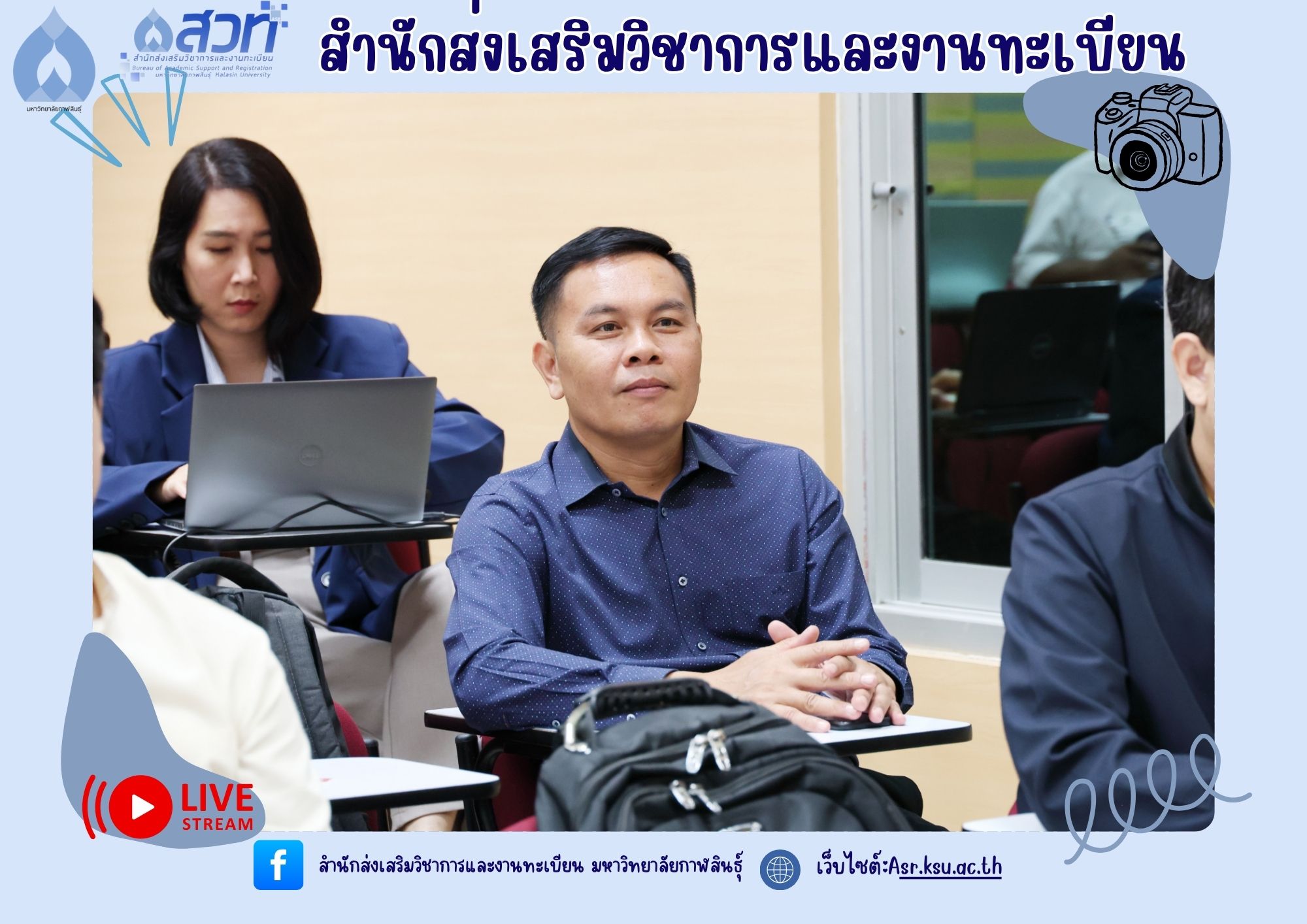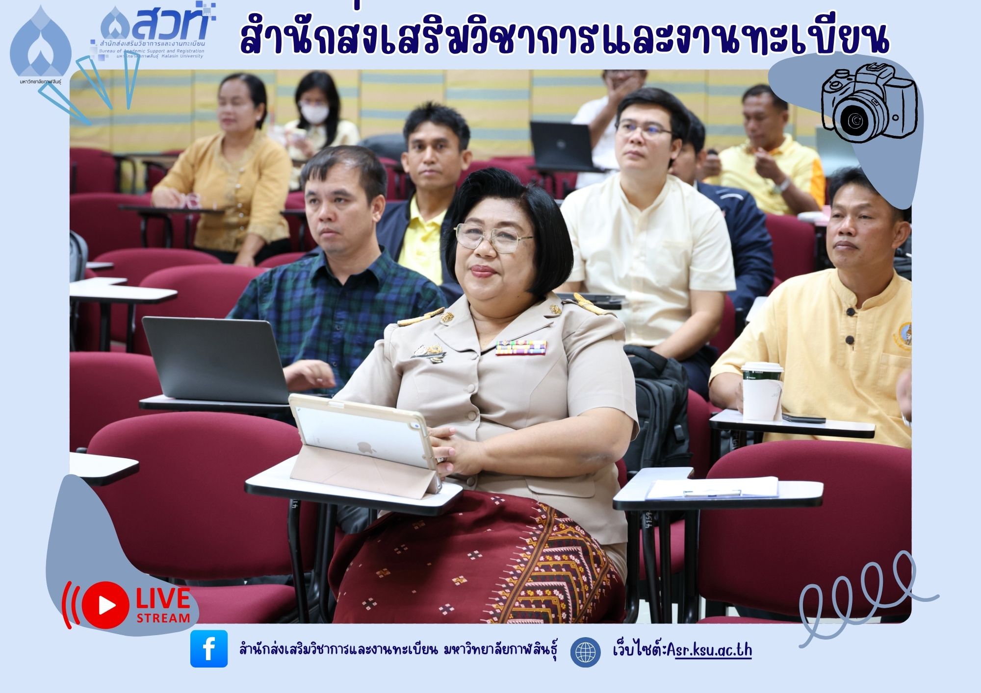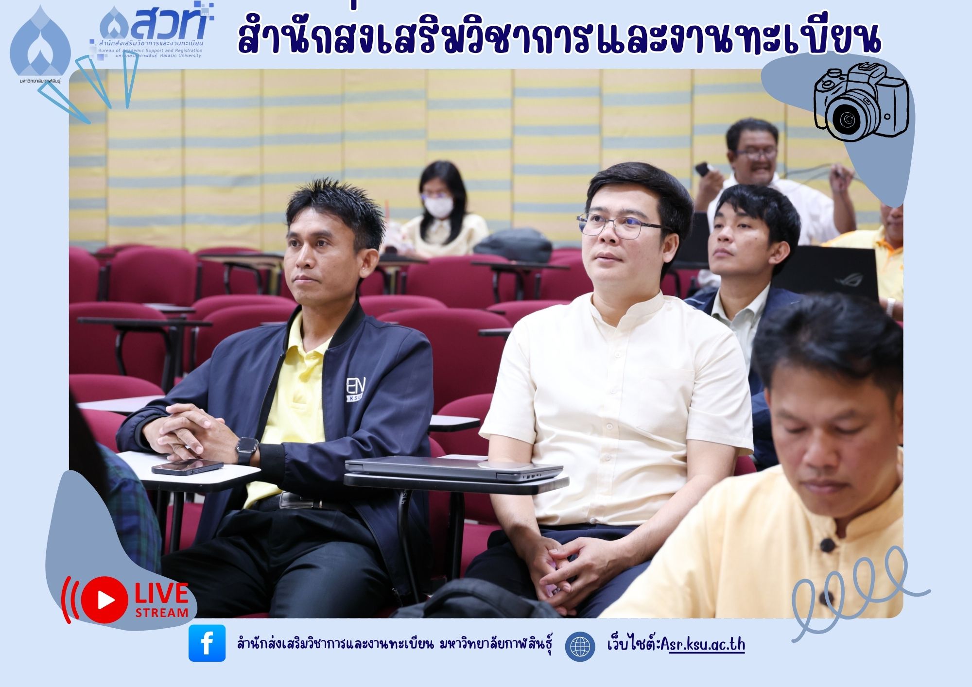 วันที่ 30 มิถุนายน 2568 งานส่งเสริมมาตรฐานหลักสูตรและฝึกประสบการณ์วิชาชีพ สำนักส่งเสริมวิชาการและงานทะเบียน มหาวิทยาลัยกาฬสินธุ์ จัดฝึกอบรมผู้ประเมินคุณภาพการศึกษาภายใน ตามมาตรฐานการอาชีวศึกษา ระดับประกาศนียบัตรวิชาชีพชั้นสูง (ปวส.)
