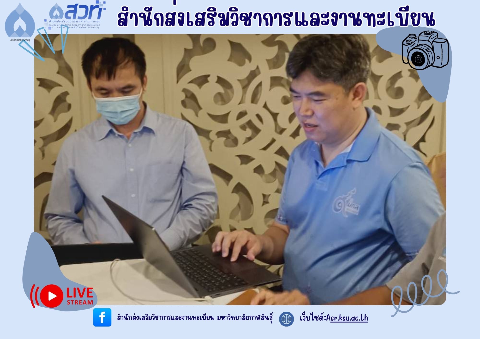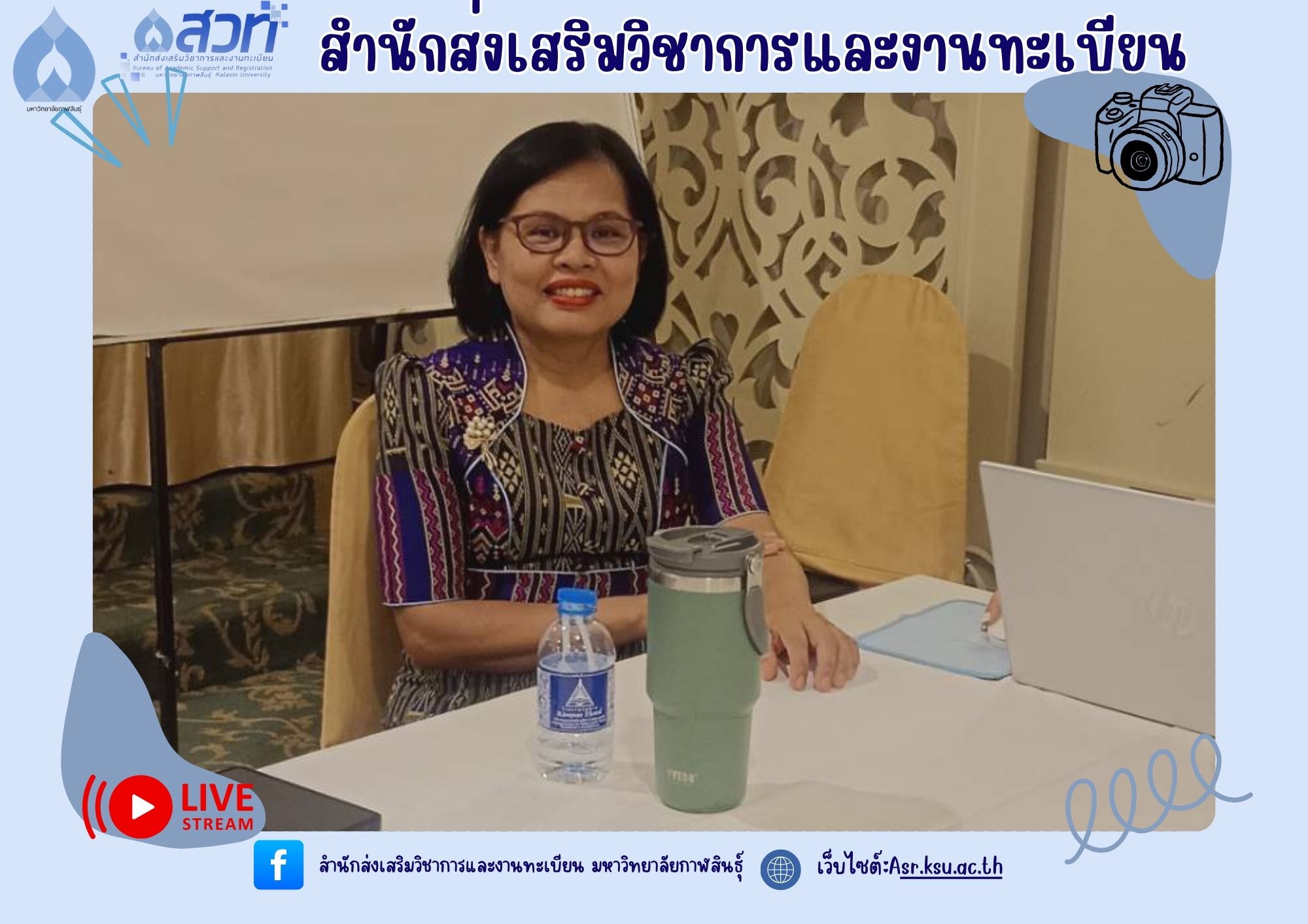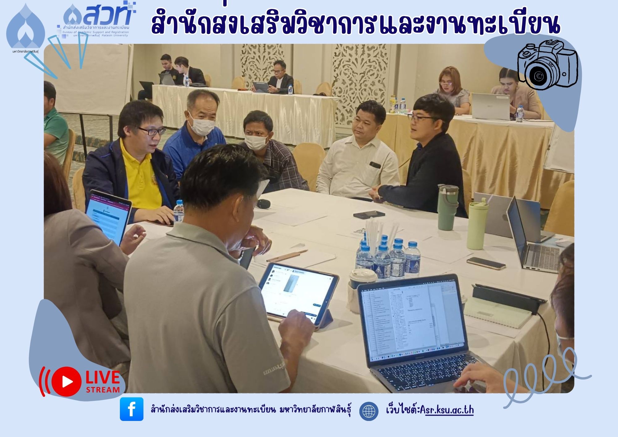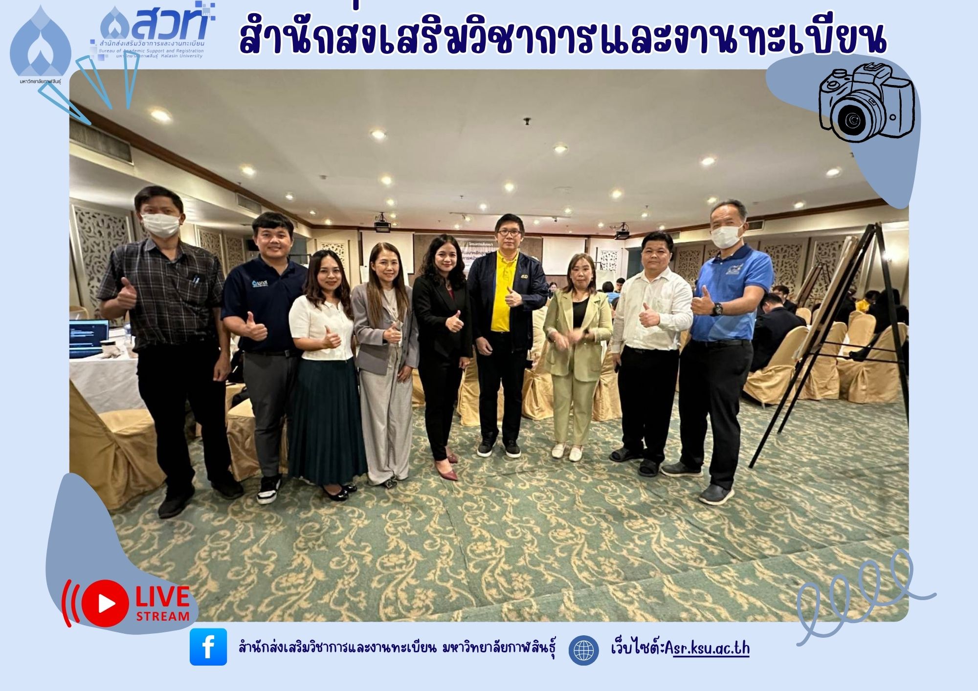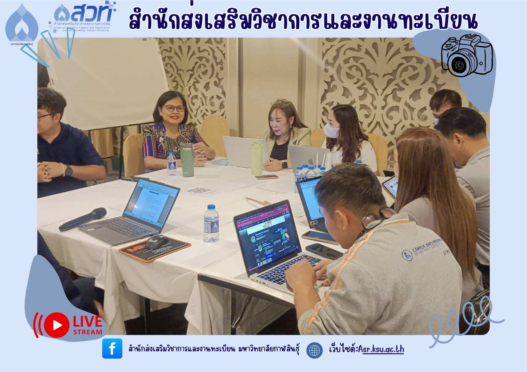 วันที่ 5-6 มิถุนายน 2568 ผู้ช่วยศาสตราจารย์อำภาศรี พ่อค้า รองอธิการบดี มหาวิทยาลัยกาฬสินธุ์ พร้อมผู้บริหาร สำนักส่งเสริมวิชาการและงานทะเบียน นำหลักสูตร เข้าร่วม โครงการสัมมนาการพัฒนาหลักสูตรต่อเนื่องเชื่อมโยงกับธนาคารหน่วยกิต (Credit Bank) โดยกองพัฒนาผู้ฝึกและเทคโนโลยีการฝึก กรมพัฒนาฝีมือแรงงาน ณ ห้องประชุม ดอกเกด โรงแรมริมปาว เพื่อจัดทำ workshop และเทียบเคียงรายวิชากับกรมพัฒนาฝีมือแรงงาน