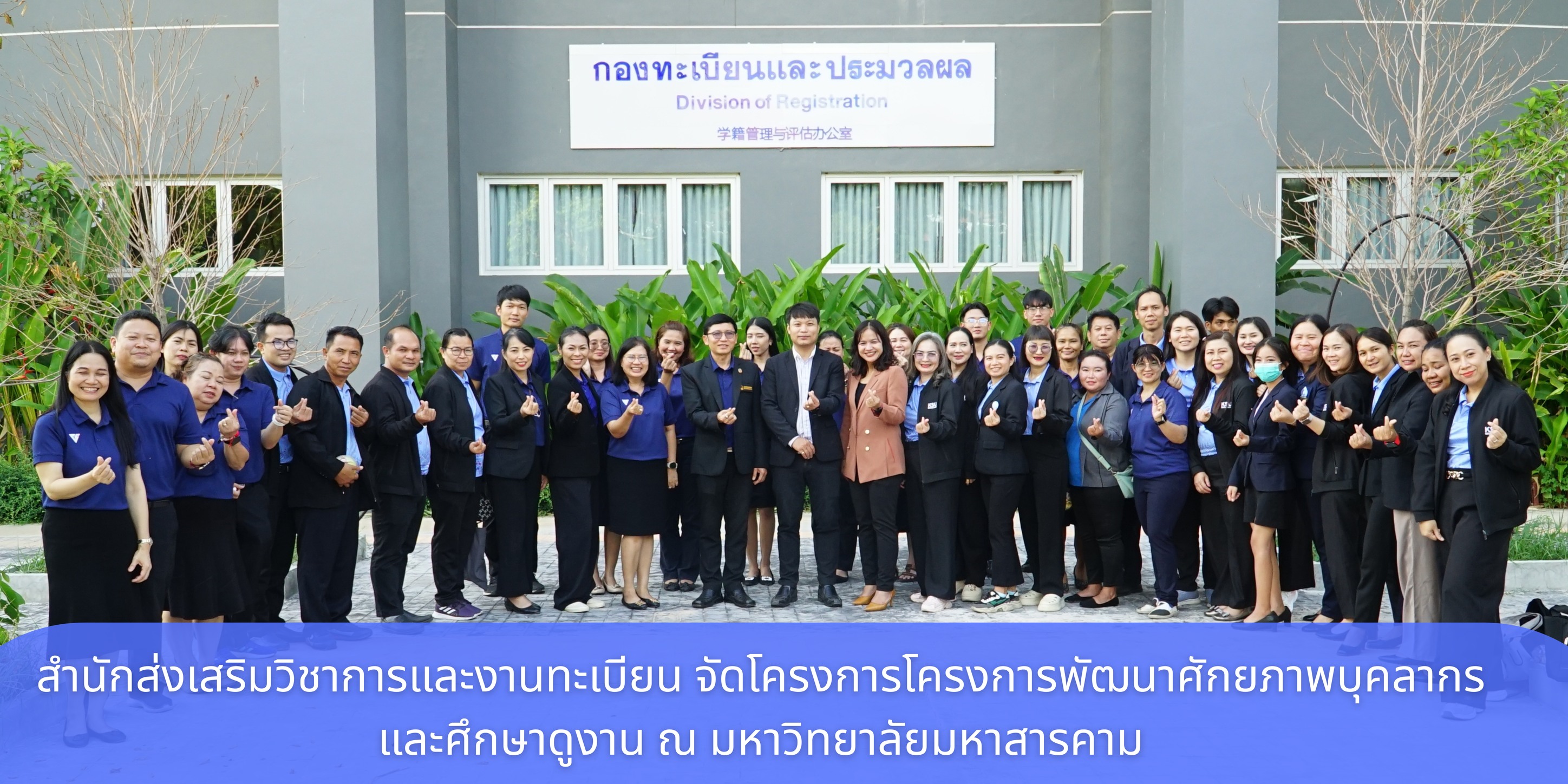 วันนี้ 25 เมษายน 2568 ผู้ช่วยศาสตราจารย์นพคุณ ทองมวล ผู้อำนวยการสำนักส่งเสริมวิชาการและงานทะเบียน มหาวิทยาลัยกาฬสินธุ์ พร้อมผู้บริหารและบุคลากร จำนวน 29 คน ได้ศึกษาดูงาน ณ กองทะเบียนและประมวลผล กองบริการการศึกษา และสำนักวิทยบริการ มหาวิทยาลัยมหาสารคาม ในโครงการพัฒนาศักยภาพบุคลากรและศึกษาดูงาน ในการศึกษาดูงานครั้งนี้ได้รับเกียรติจาก รองศาสตราจารย์คัทลียา เมฆจรัสกุล ผู้ช่วยอธิการบดีฝ่ายพัฒนาหลักสูตรและส่งเสริมการเรียนรู้ตลอดชีวิต กล่าวต้อนรับบุคลากรจากสำนักส่งเสริมวิชาการและงานทะเบียน
