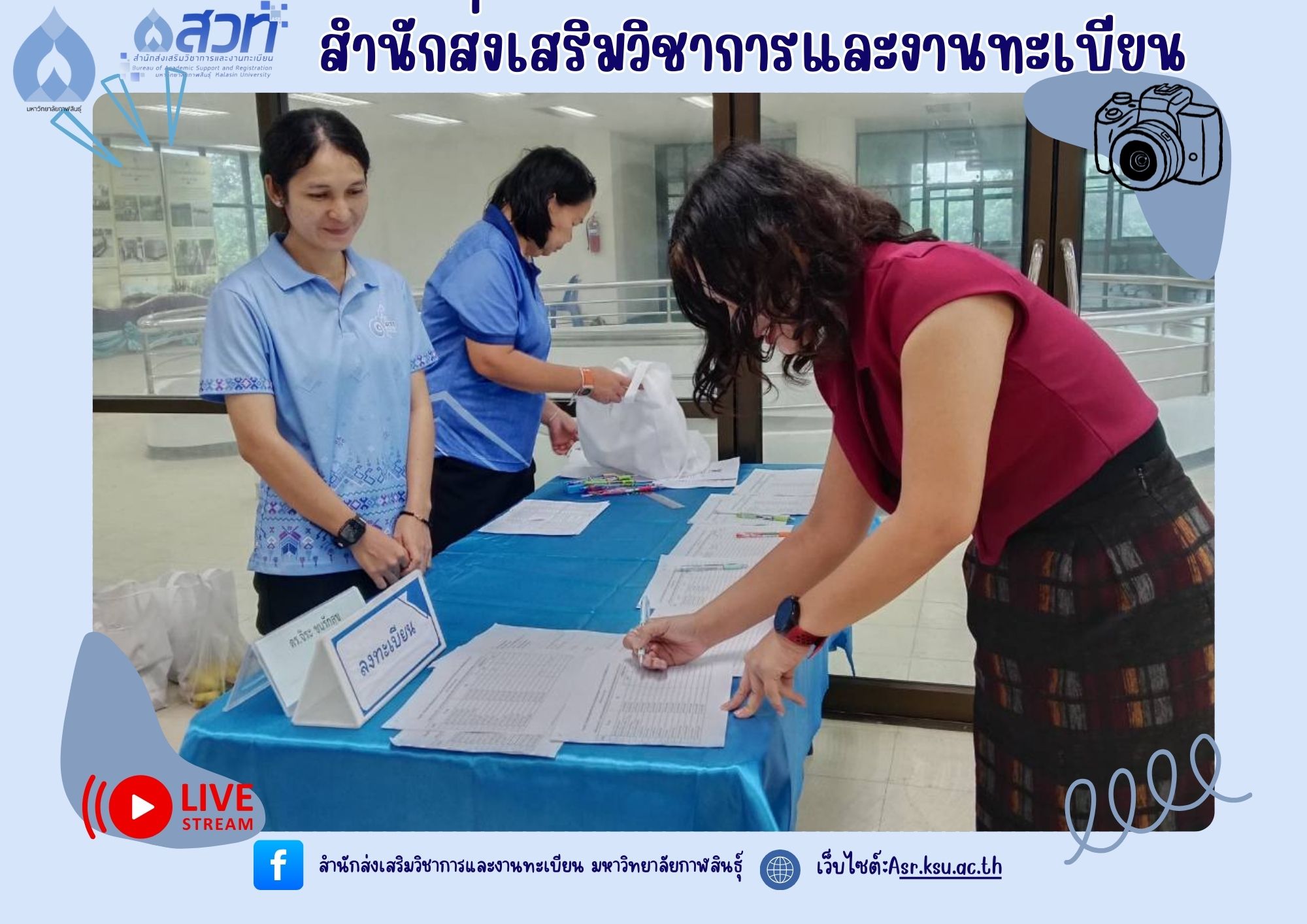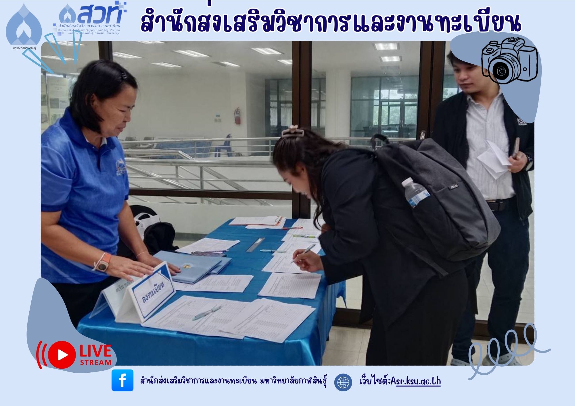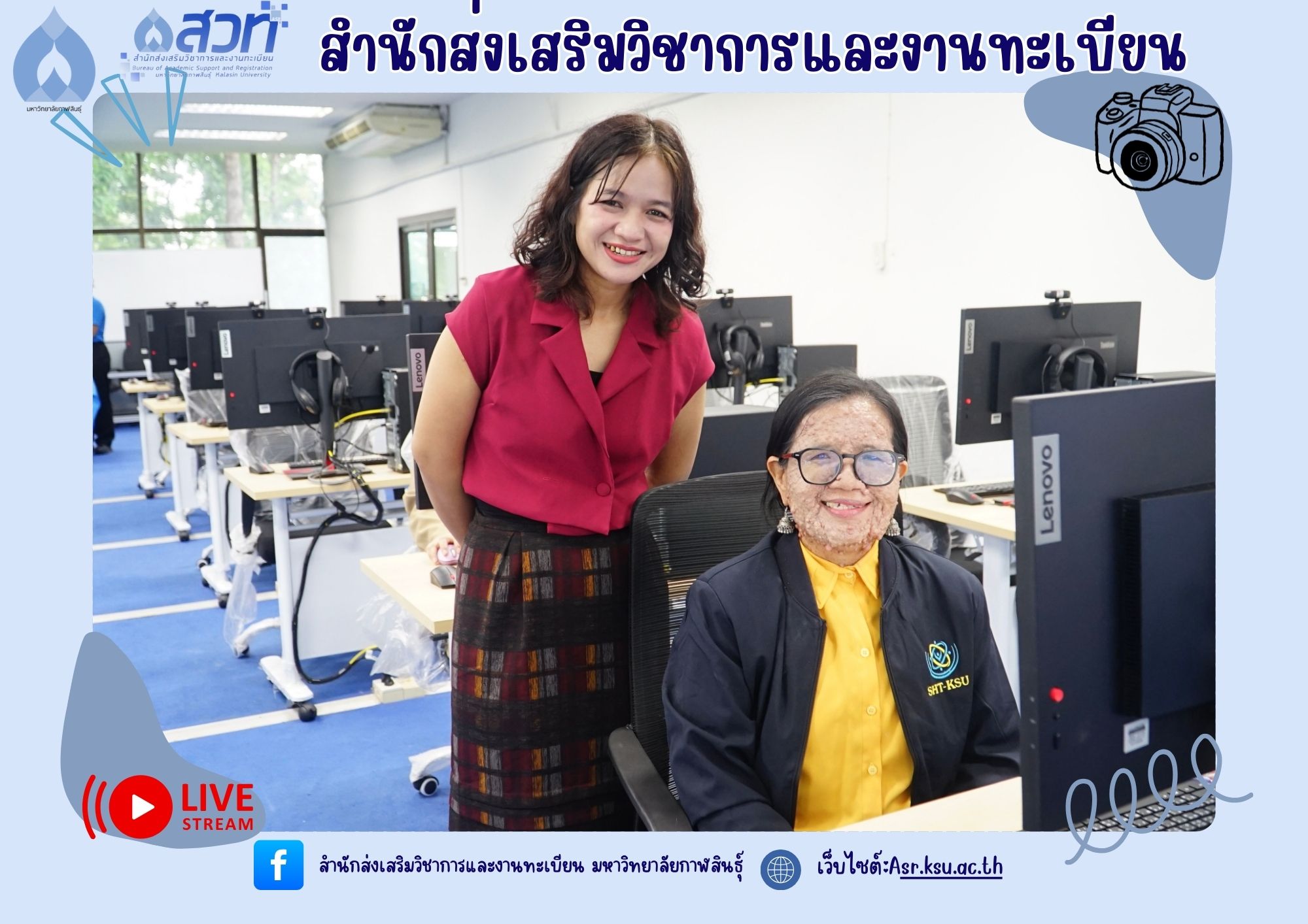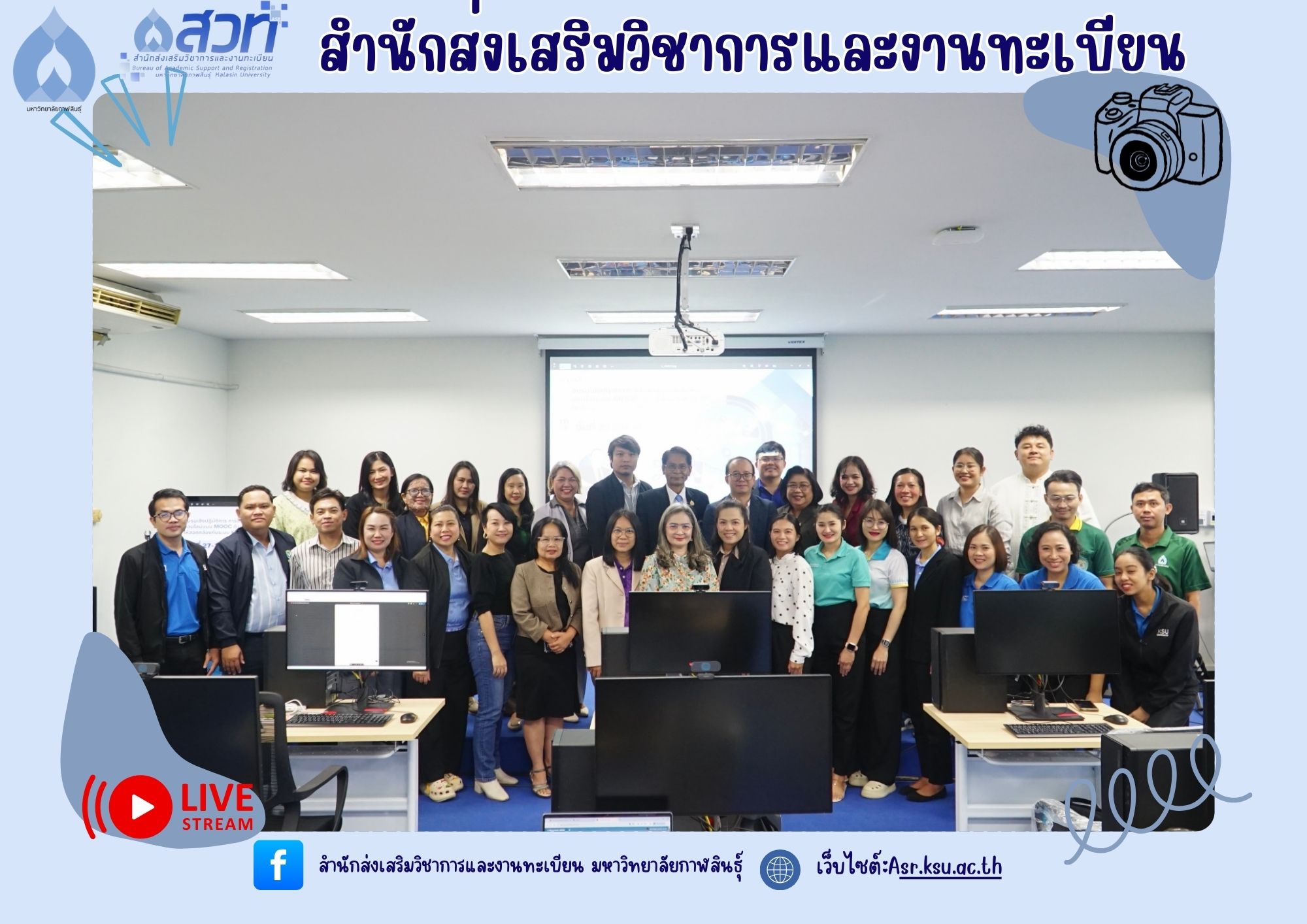 วันที่ 27 สิงหาคม 2568 งานทะเบียนและประมวลผล สำนักส่งเสริมวิชาการและงานทะเบียน มหาวิทยาลัยกาฬสินธุ์ จัดโครงการพัฒนาแพลตฟอร์มการจัดการเรียนรู้ตลอดชีวิต กิจกรรมที่ 2 กิจกรรมพัฒนาหลักสูตรและสื่อการสอน ณ ห้อง Lab-com 1 ชั้น 3 อาคารวิทยบริการและเทคโนโลยีการศึกษา โดยมีรองศาสตราจารย์สุพรรณ สุดสนธิ์ รักษาราชการแทน อธิการบดีมหาวิทยาลัยกาฬสินธุ์ เป็นประธานในพิธีเปิดโครงการ
