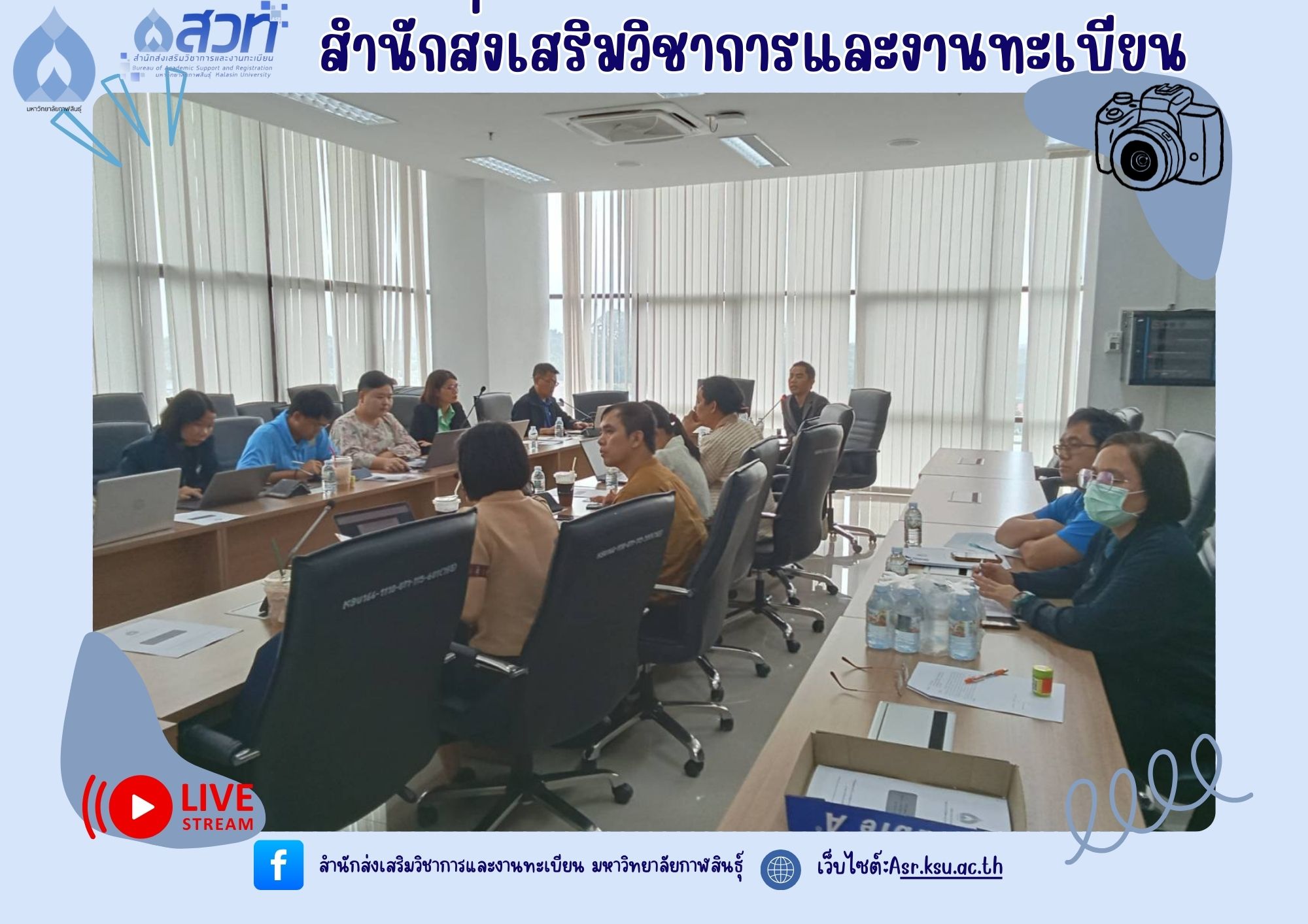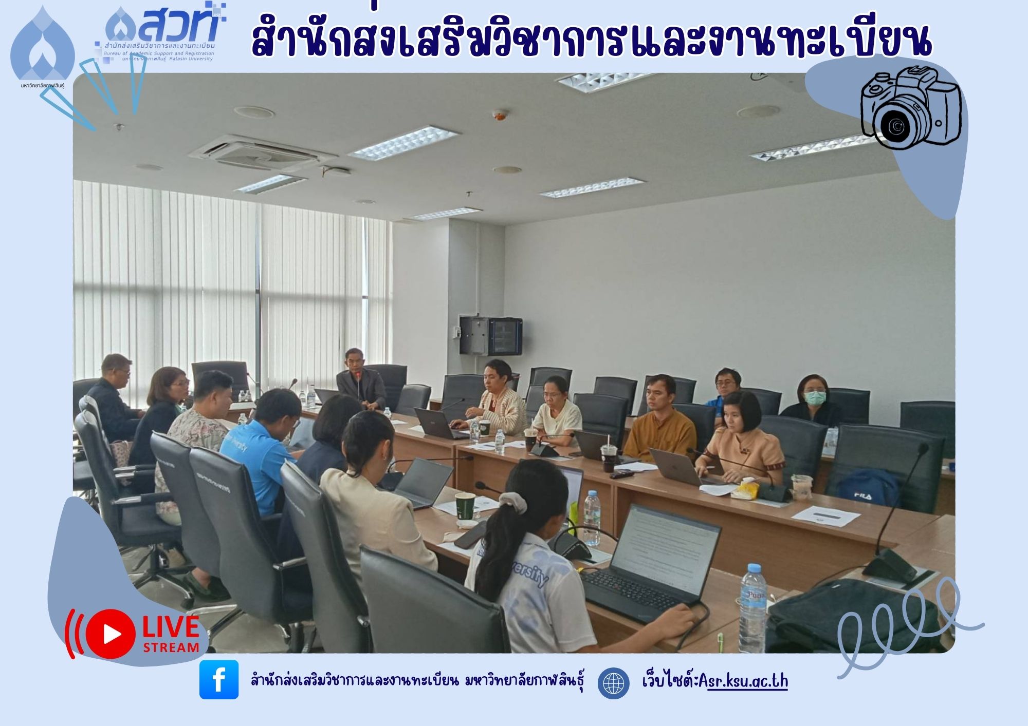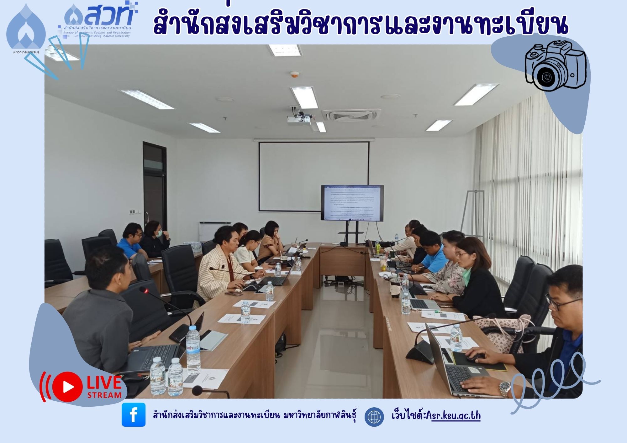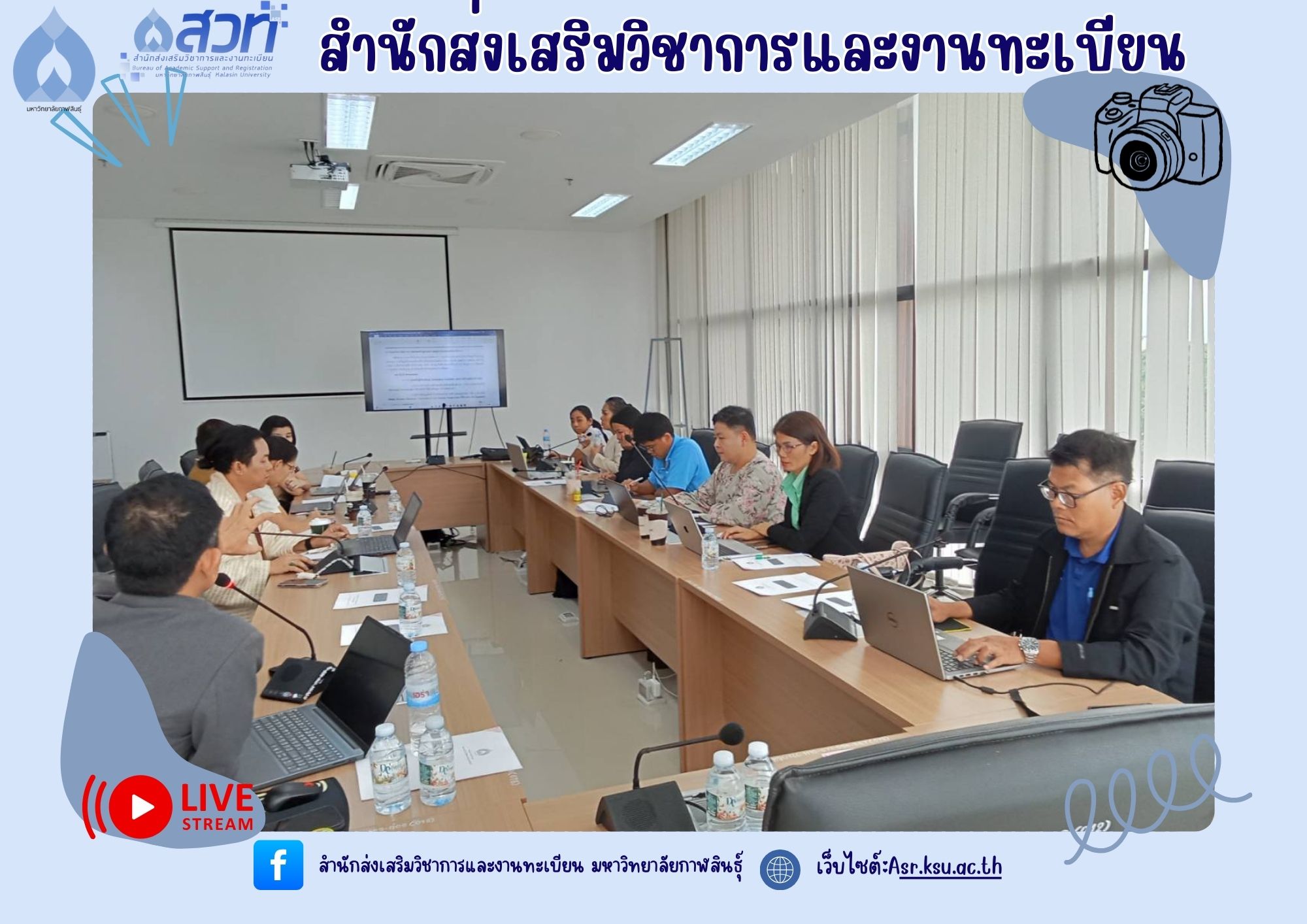 งานส่งเสริมมาตรฐานหลักสูตรและฝึกประสบการณ์วิชาชีพ ดำเนินการจัดประชุมคณะกรรมการกำกับติดตามมาตรฐานหลักสูตร ครั้งที่ 1/2568 ในวันที่ 19 กันยายน 2568 เวลา 13.30 น ณ ห้องประชุมยุทธศาสตร์ ชั้น 4 อาคารเฉลิมพระเกียรติกรมสมเด็จพระเทพรัตนราชสุดาฯ 70 พรรษา มหาวิทยาลัยกาฬสินธุ์ (พื้นที่ในเมือง)